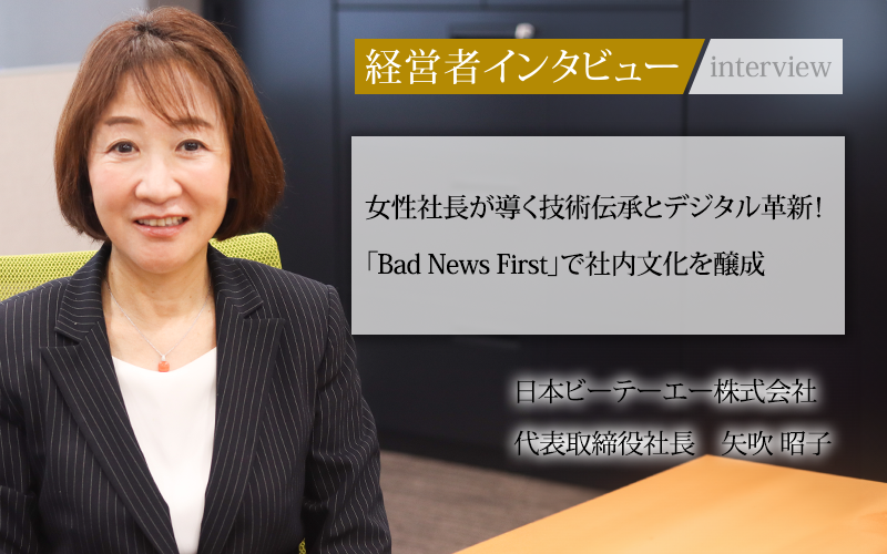 矢吹昭子/1959年千葉県生まれ。上智大学外国語学部卒業。日本郵船株式会社に入社し10年間勤務。その後、マサチューセッツ工科大学院(MIT)に留学。帰国後は外資系企業のマーケティングに従事。2010年日本ビーテーエー株式会社に入社。2017年、代表取締役社長に就任。