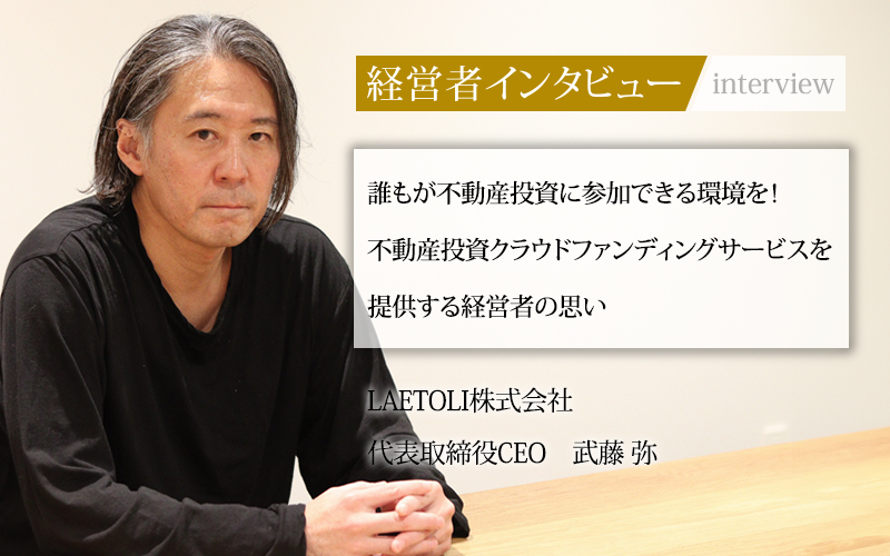 ユーザーからクラウドファンディング(以下クラファン)で資金を募り、少額から不動産への投資を行えるサービスを提供するLAETOLI株式会社。「不動産投資は潤沢な資産のある富裕層が行うもの」というイメージを覆し、投資家の裾野を広げている。