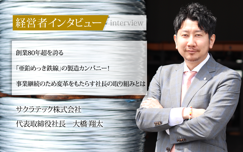 「針金を、おもろい未来の引き金に。」をミッションとして業界変革に挑戦しているサクラテック株式会社の代表取締役社長である大橋翔太氏に、経営の方針や今後の展望についてうかがった。