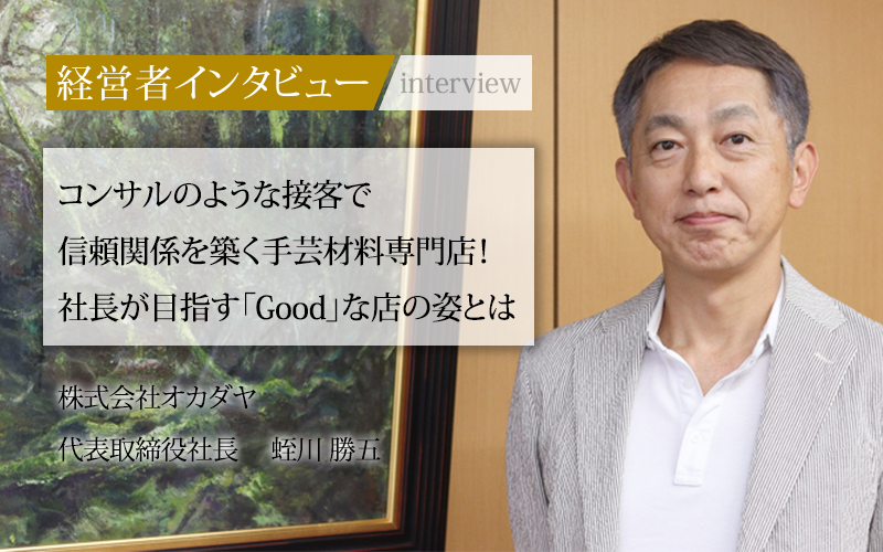 蛭川勝五/1967年、東京都生まれ。慶應義塾大学法学部卒業後、1990年に株式会社高島屋に入社。婦人服売場・外商部を担当。1995年、株式会社オカダヤに入社後、手芸材料部門・ランジェリー部門を経て、2013年に代表取締役社長に就任。