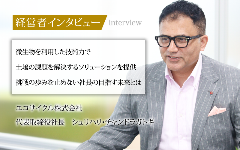 エコサイクル株式会社は、バイオを利用した土壌浄化技術を持つ企業だ。土壌浄化には、どのような技術が使われているのか。また、限られた業界で、どのように他社との差別化を図っているのか。同社の技術と強み、今後の展開について、代表取締役社長のシュリハリ・チャンドラガトギ氏にお話をうかがった。