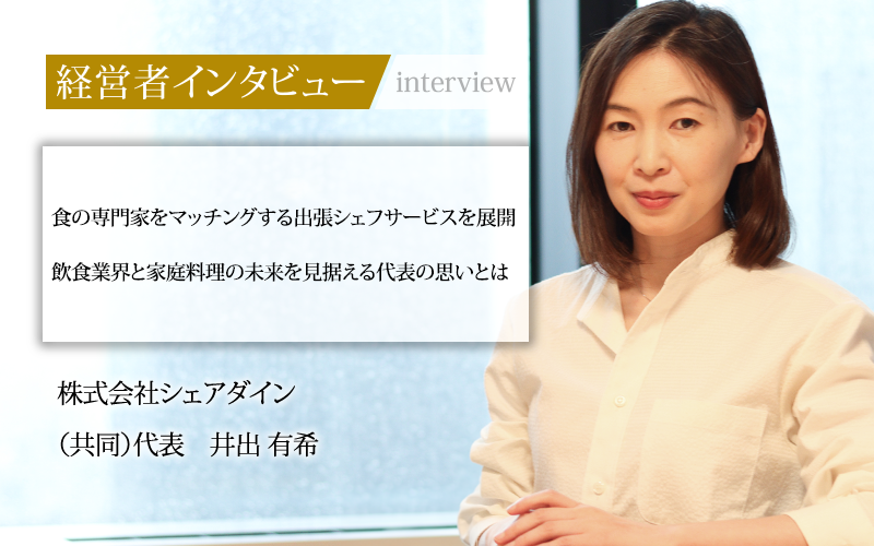 食は、すべての人にとって毎日、欠かせない営みだ。その食に関する各家庭の悩みを少しでも減らしたいと願う、株式会社シェアダイン共同代表の井出有希氏。彼女は当初、手がけた家事代行サービスの枠を超えて、現在では飲食業界で働くシェフのことを本気で考え、業界を変えていきたいと考えている。このビジネスモデルは、超高齢化社会となり、労働人口が減っていくことが予想される日本で、定着していくのではないだろうか。