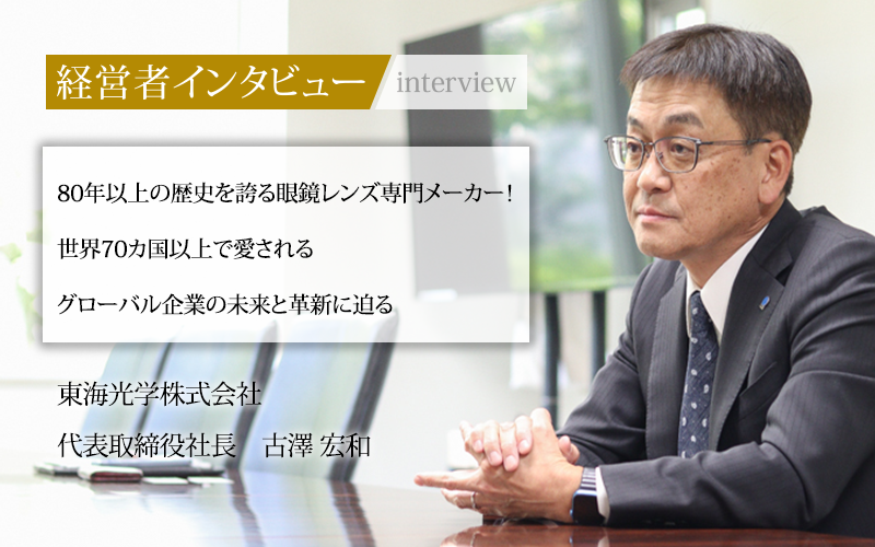古澤宏和/1970年、愛知県出身。1994年中央大学理工学部卒業後、東海光学株式会社に入社。1999年取締役社長室長就任、兼海外事業担当、2003年専務取締役を経て2009年より現職。