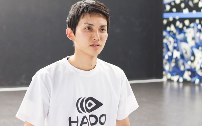「HADO」とは頭にヘッドマウントディスプレイ、腕にアームセンサーを装着し、AR(拡張現実)によって勝敗を競い合うスポーツです。イメージとしては、ドッジボールのような形式にシューティングゲームの要素を加えたものです。