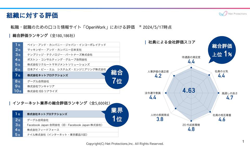 ーークチコミサイトの会社評価ランキングではインターネット業界で1位、総合評価ランキングで上位1%にランクインされていますね。