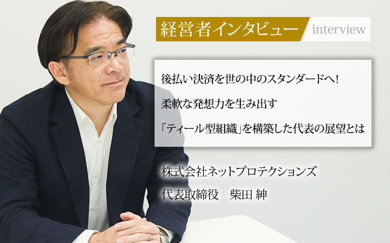 ネットプロテクションズの強みや、事業の立ち上げに関わるまでの経緯、社員の意欲を引き出すティール型組織の魅力などについて、代表取締役の柴田紳氏にうかがった。