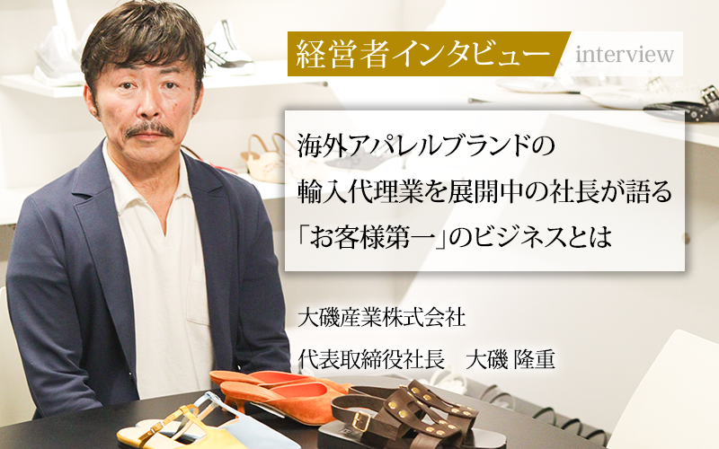 1919年に呉服問屋として創業した大磯産業株式会社。時代の流れを読みながら商材や販売場所を変え、現在は海外ファッションアイテムの輸入代理業を軸としている。代表取締役社長の大磯隆重氏に、会社の歴史や就任の経緯、経営術についてうかがった。