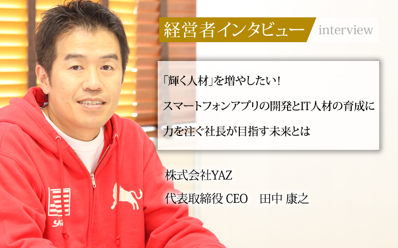 このような状況の中で「輝く人材」を育成し、スマートフォンのアプリ開発を行っているのが、株式会社YAZ(ヤジュ)だ。ここでいう「輝く人材」とはどのような人物像なのだろうか。同社の代表取締役CEOである田中康之氏に、創業時から続く「輝く人材」への思いや、事業内容、そして今後の展望についてお話をうかがった。