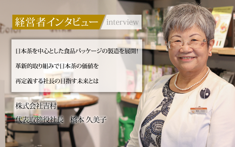 株式会社吉村は、日本茶のパッケージ製作を主な事業としながらも、店舗では菓子類や便利なお茶グッズも取り扱う企業だ。これまでに数多くの働きやすさに関する賞を受賞しており、その背景には代表取締役社長の橋本久美子氏の独自の経営理念と経験がある。橋本氏に、同社の事業展開の背景と未来について詳しく話をうかがった。