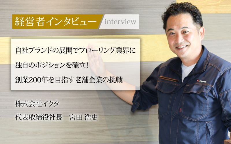 フローリング業界で独自の地位を築く株式会社イクタ。1870年に建築資材店として創業し、主に建築資材の受託製造を行っていたが、2004年に自社ブランド製品の展開に転換した。業界ではシートフローリングが大半を占める中、同社の製品は天然木の製品が7割を占める。高付加価値製品の開発にも力を入れ、抗菌効果のある「エアー・ウォッシュ・フローリング」など、市場のニーズを先取りする同社。