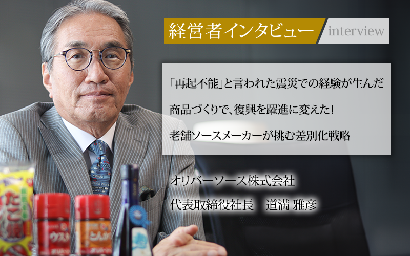 家庭用のソースを扱う企業として、古くから愛されてきた神戸のオリバーソース株式会社。2023年に創業100周年を迎えた老舗ソースメーカーが歩んできた道は、決して平坦なものではなかった。阪神・淡路大震災によって工場や社屋を焼失し、従業員の命を失うという困難を乗り越えてきたのは、代表取締役社長の道満雅彦氏だ。どのようにして被災の困難を乗り越えたのか、また経営者としての思いや展望をうかがった。