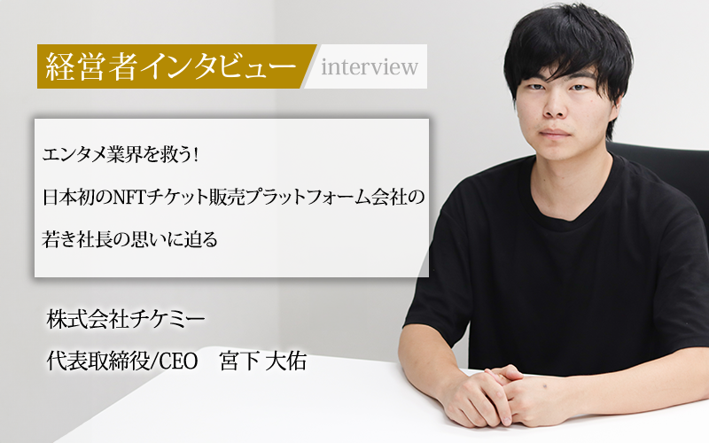 同社を率いるのは、学生時代にアパレル販売のECサイト事業を立ち上げ、事業譲渡も経験した若き代表取締役/CEOの宮下大佑氏だ。同氏は一体なぜNFT(本物であることや所有権を証明する証明書がついたデジタルデータ)のチケット販売プラットフォーム会社を始めたのか。創業のきっかけやサービスの魅力を聞いた。