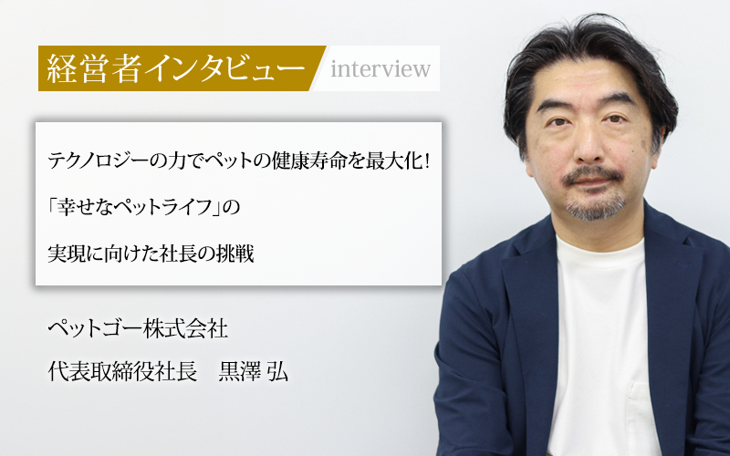 同社はペットの健康寿命を最大化することに貢献し、飼い主もペットも暮らしやすい社会の構築を目指している。今回、代表取締役社長の黒澤弘氏に、創業の経緯やサービスの特徴、同社が目指す社会について聞いた。