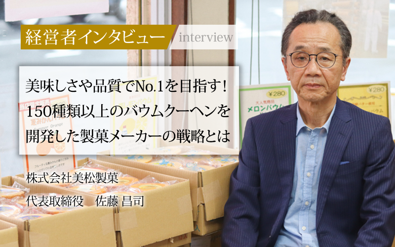 先代から家業を引き継ぎ、OEMの受託で事業を成長させてきた佐藤社長。「24時間365日新商品のことを考えている」という発言からもわかるように、常に次の一手を考える姿勢が、200以上ものバウムクーヘンを生み出している原動力なのだろう。新たな販路を見出し、さらなる成長を目指す株式会社美松製菓は、これからも多くの人々から愛されるバウムクーヘンを提供することだろう。
