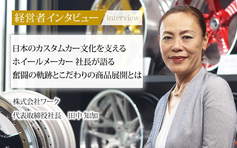 田中知加/1971年、大阪府東大阪市生まれ。京都外国語大学卒業。2000年、株式会社ワークに海外営業担当として入社。2015年、代表取締役社長に就任。一般社団法人日本自動車用品・部品アフターマーケット振興会副会長、JAWA事業部長。