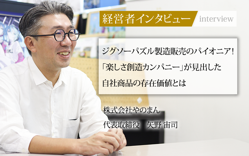 ジグソーパズルの製造・販売を軸とし、ボードゲームやカードゲーム関連商品、球体パズルなどのホビー商品を扱う株式会社やのまん。創業から70年間、「楽しさ創造カンパニー」をキャッチフレーズに、日本の余暇時間を充実させてきた。祖父母が創業した企業を父から受け継ぎ、3代目社長として2018年に就任した矢野宙司氏。就任後に直面したコロナ禍はどのような影響を与えたのか。創業70周年を迎えた同社の今後の展望について話を聞いた。
