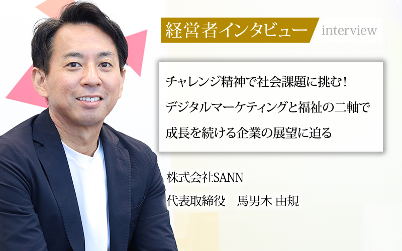 デジタル化が進む現代社会において、マーケティングと福祉という一見異なる分野で事業を展開する株式会社SANN。2つの分野で社会課題の解決に挑戦し続け、注目を集めている企業だ。同社は創業以来、時代の変化に合わせて事業を多角化し、着実な成長を遂げてきた。代表取締役である馬男木由規氏に、起業の経緯から今後の展望までお話をうかがった。