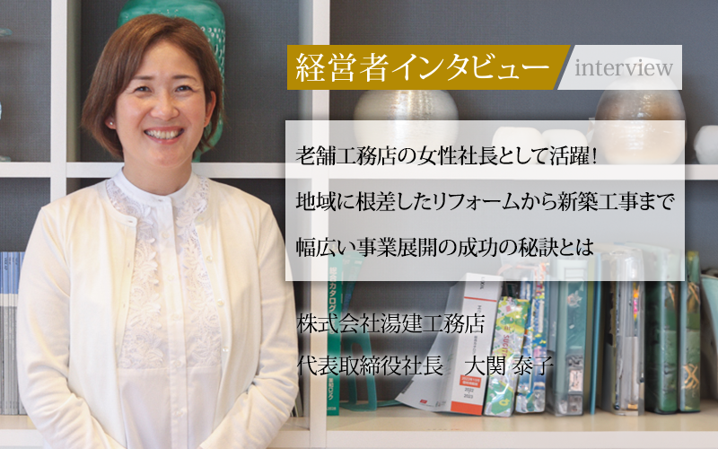 建築業界の女性社長として、女性の登用を積極的に行い、地域に根ざす工務店として「ホームドクター」を目指してきた大関社長。その姿勢からは、売上だけにこだわらず、地域の顧客の要望に応えることを第一にする姿勢が感じられた。そして、それをやりがいに感じる社員を育てる真摯な姿勢も、非常に印象的である。大関社長が率いる湯建工務店が、地域社会に貢献し続ける未来に大いに期待したい。