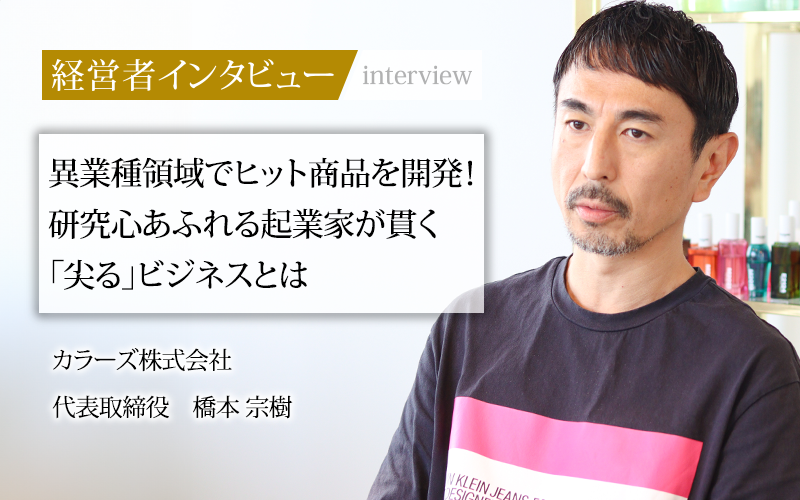 まったくの異業界から美容の分野に飛び込み、オーガニックコスメをヒットさせた橋本社長。流行に乗るだけのビジネスではなく、独自の視点で市場を見渡す中で植物が持つパワーに着目した。カラーズの高品質な製品がより身近になることは、ストレスフリーかつ誰もが暮らしやすい社会の実現に直結するだろう。