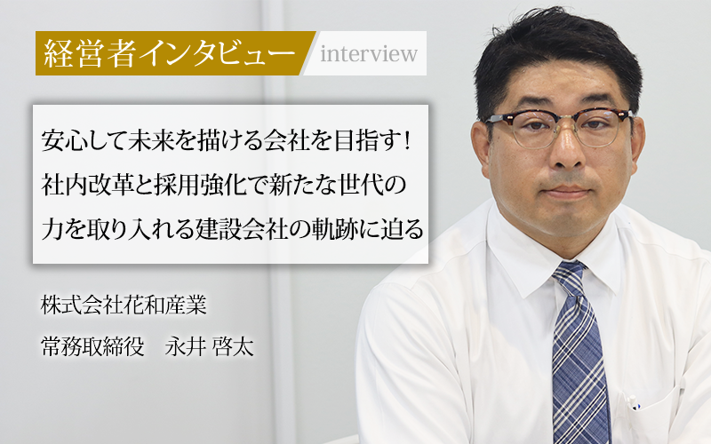 永井啓太/1984年、神奈川県生まれ。同志社大学卒業。馬淵建設株式会社にて5年の修業期間を経て株式会社花和産業に入社。2025年に代表取締役就任予定。NPO法人アスリードにて中学・高校生の就学サポートなど、学校教育活動にも注力している。