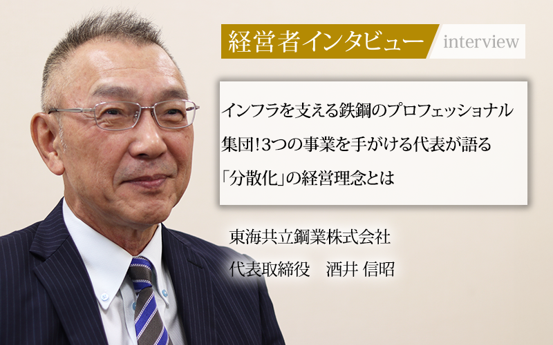 東海共立鋼業株式会社は、1950年から愛知県で鉄製品の製造・販売を手がけており、特にレールの販売においては県内トップクラスの実績を誇る鉄鋼会社だ。同社は「鉄」を中心に据えつつ、幅広い分野で活躍している。今回は、3代目代表取締役である酒井信昭氏に、同社がどのような事業をどのような理念のもとで展開しているのか、話をうかがった。