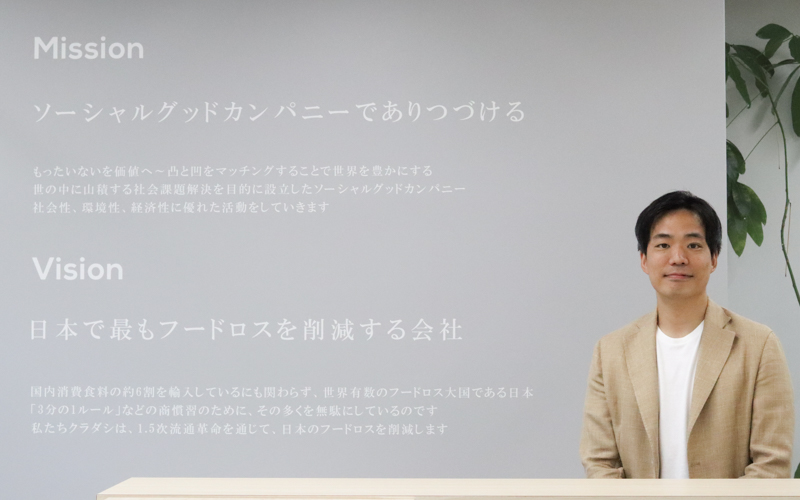 農林水産省などの推計によると、2022年度の日本のフードロスは約472万トン、このうち事業系のフードロスの量は236万トンに上るという。株式会社クラダシは「日本で最もフードロスを削減する会社」というビジョンを掲げ、フードロスの削減に挑戦している。2024年に代表取締役社長CEOに就任した河村晃平氏に経済性と公益性の両立を目指す社会貢献ビジネスの取り組みをうかがった。