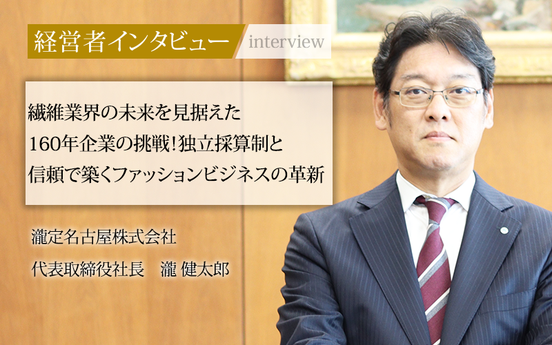 その中で、世界大戦、関東大震災や世界恐慌などさまざまな社会情勢を乗り越え、今年160年を迎えた企業がある。それが、名古屋に本社を構える瀧定名古屋株式会社である。受注生産が基本のファッション業界において、お客様や仕入先との信頼関係を大切にしながら事業を続ける同社の代表取締役社長、瀧健太郎氏にその取り組みや強みについて話をうかがった。