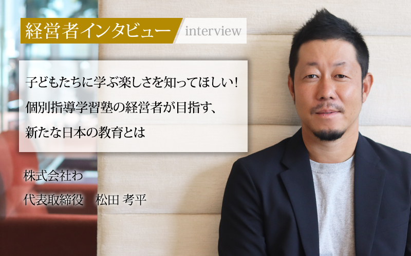 「日本の教育を変える」という理念に込めた思いや、運営する学習塾の特徴、労働環境の整備に向けた取り組みなど、代表取締役の松田考平氏に話をうかがった。