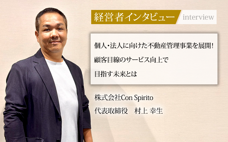 不動産管理を主軸とする企業として、顧客満足度を重視したサービスで注目を集める株式会社Con Spirito。2007年の設立以来、他社が敬遠するような物件も積極的に引き受け、オーナーとともに再生させていく独自のアプローチで成長を続けてきた。近年はトレーラーハウス事業にも進出。口コミや紹介を中心に顧客基盤を拡大し、2024年度には売上50億円を超える勢いだ。今回は同社の代表取締役である村上幸生氏に、経営理念や今後の展望について話をうかがった。