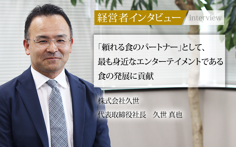 お客様から選ばれている理由や、経営者としての基礎を築いた経験、食を通じた社会貢献に対する思いなどについて、代表取締役社長の久世真也氏にうかがった。