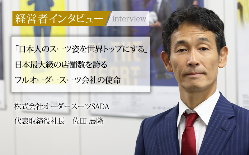 株式会社オーダースーツSADAは、一人ひとりの体型に合ったフルオーダースーツの製造・販売を手がけている会社だ。今や多くの人が多くの場面でスーツを着ているが、同社の代表取締役社長、佐田展隆氏は「スーツは勝負の場で着るもの」と語る。