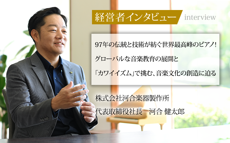 楽器業界において、長い歴史と伝統を持ちながら、常に新しい挑戦を続ける企業がある。1927年の創業以来、ピアノづくりを中心に事業を展開してきた株式会社河合楽器製作所だ。高品質な楽器製造に加え、音楽教室のグローバル展開により、世界の音楽文化の創造に貢献している。創立100周年を3年後に控え、「カワイイズム」と呼ばれる精神を軸に未来を見据える同社の新たな挑戦について、2024年2月に代表取締役社長に就任した河合健太郎氏に話をうかがった。