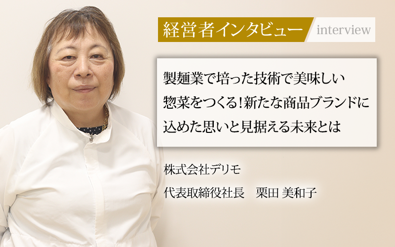 栗田美和子/1955年富山県生まれ、日本大学卒業。1977年、株式会社栗田製麺所(現株式会社デリモ)に入社。2012年、株式会社クリタエイムデリカ(旧栗田製麺所)代表取締役社長に就任。