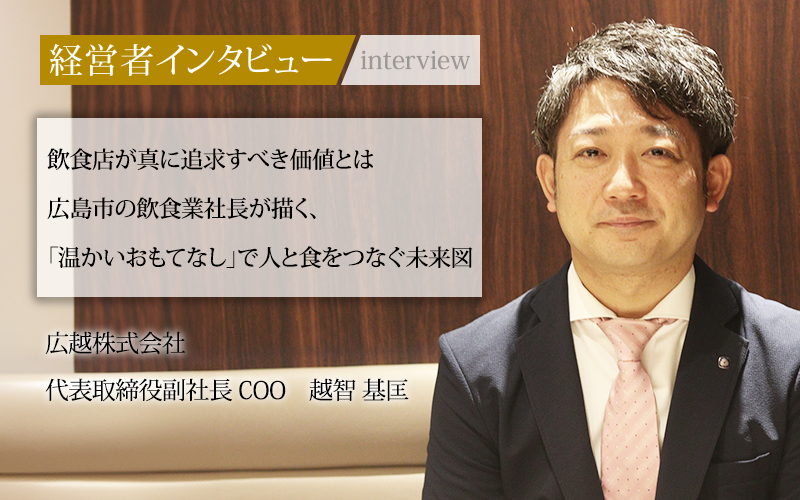 皆さんは飲食店に何を求めて足を運ぶだろうか。おいしい食事はもちろん、快適な接客や居心地の良い空間を求める方もいるだろう。広島市で複数の飲食店を営む広越株式会社は、自社のミッションをお客様に喜びをもたらすことと定義し、そのための経営に取り組んできた。