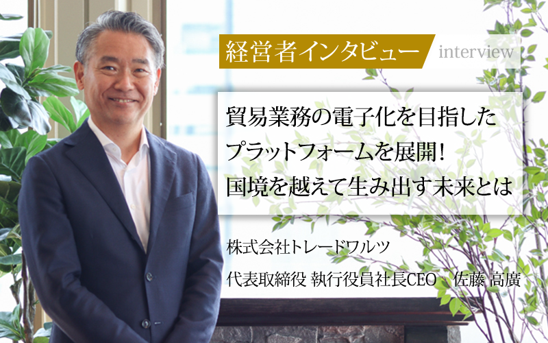 「日本の貿易業界で長年、煩雑な手続きとアナログなプロセスが足かせとなる中、注目を集めている企業がある。貿易業務のデジタル化推進により「貿易の未来をつくる」ことを使命とするスタートアップ企業、株式会社トレードワルツだ。京セラでの経験をもとに貿易の未来を切り開くため尽力する代表取締役 執行役員社長CEOの佐藤高廣氏に、経営哲学とビジョン、そして企業が目指す方向性について詳しくうかがった。