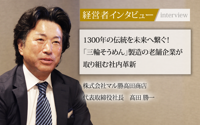 1933年の創業以来、この三輪そうめん一筋に製造・販売を続けてきた株式会社マル勝髙田商店は、「伝統とは守るだけでなく、挑み続けること」と考え、そうめんを未来へ継承し、持続させるためのさまざまな改革に取り組んでいる。今回は代表取締役社長の髙田勝一代氏から、同社が挑み続ける革新について話をうかがった。