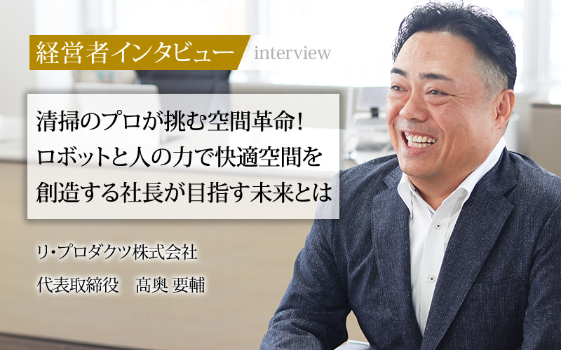 清掃業界に新風を吹き込むリ・プロダクツ株式会社。代表取締役を務める髙奥要輔氏は父が創業した同社を中学生の頃から手伝い、はじめはアルバイトとして入社した。現在は、BtoBのお掃除ロボットレンタル事業「おそうじレンタル」を運営し、全国展開を目指している。清掃の枠を超え、快適空間の創造へと事業を進化させる同社の戦略と、髙奥社長が描く未来像について話を聞いた。