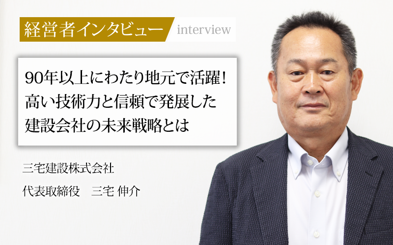代表取締役の三宅伸介氏は、建設業界が大きく変動する時代を乗り越え、3代目社長として会社のさらなる発展を目指している。三宅氏に同社のこれまでの歩みと、今後の展望についてお話をうかがった。