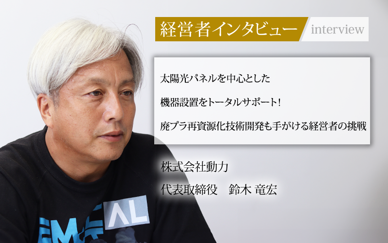 地球温暖化による異常気象が世界各地で問題となっている現代、環境保護の意識がますます高まっている。そんな中、太陽光発電の普及や、廃プラスチックの再資源化事業に力を入れているのが、株式会社動力だ。