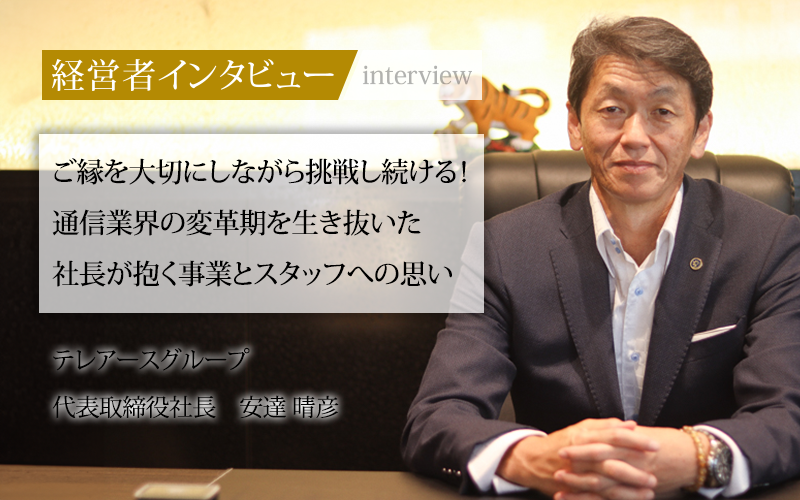 株式会社テレアースジャパンは、携帯電話の代理店事業会社として1999年に設立された。携帯電話の普及に伴って事業を拡大してきたが、現在は通信事業の一部を譲渡し、「テレアースグループ」として通信事業の他、飲食店事業なども多角的に運営している。現在の業態に至るにはどのような背景があったのか、代表取締役社長を務める安達晴彦氏にうかがった。
