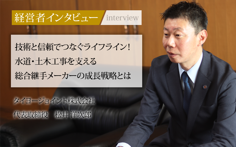 タイヨージョイント株式会社は、水道・土木工事用の総合継手専門メーカーとして、70年以上にわたり業界をリードしてきた。建築設備、浄水場、トンネル工事など、幅広い分野で使用される高品質な「継手」を提供し、社会インフラを支えている。