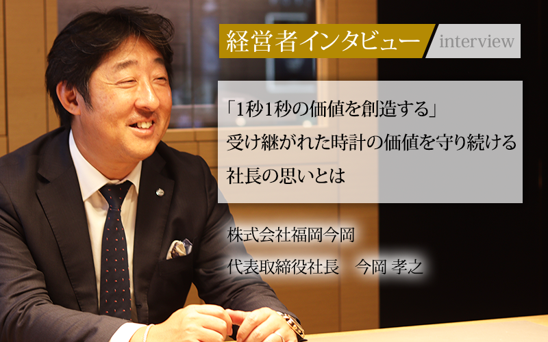 デジタルツールを使ったライフスタイルが確立している今、時計もデジタル式のものが数多く出回っている。そんな時代の変化のなか、歴史と芸術という観点で古き良き時計の価値を伝え続けているのが、株式会社福岡今岡だ。時計のブランドに対する明晰な認識を掲げて、右肩上がりの経営を続ける今岡孝之代表取締役社長に昔ながらの時計ビジネスの魅力を聞いた。