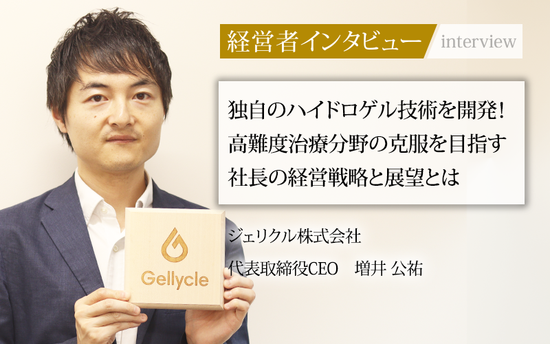 均一な網目構造を持つゲルの創成により、多様な物性コントロールが可能となり、医療機器・医薬品の領域をけん引するジェリクル株式会社。この世界水準の技術を医療の幅広い分野で活用するために、同社の増井公祐代表取締役CEOは独自のビジネスモデルを構築している。増井社長にゲル市場の将来性と可能性についてうかがった。