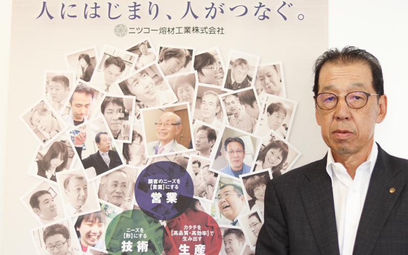 そんな同社の代表取締役、津田育久氏は、営業マンとして長年にわたり活躍してきた人物だ。現在のニツコー熔材工業の経営には、津田社長が営業マン時代に培ってきた経験とノウハウが活かされている。
