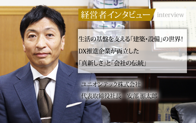 マネジメント層の育成について「自分のことだけでなく、会社全体を見られる人材を増やしたい」と語った安部社長。新人には先輩社員がつき、丁寧に仕事を教えるという育成方針からも「一人ひとりをじっくりと育てる」というユニオンテックの伝統を感じた。「安心して成長できる会社」を探す人にとって、とてつもなく魅力的だと言える。