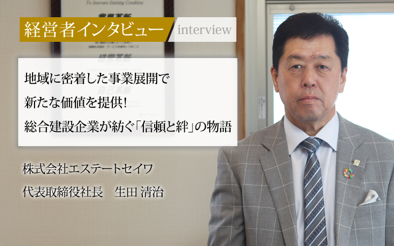 創業50周年を迎えた株式会社エステートセイワは、岡山県を拠点に地域密着型の建設事業を展開。土地活用や非住宅建設に強みを持ち、特に流通店舗などの商業施設建設や不動産活用で実績を重ねてきた。近年では医療・福祉施設の開発にも力を入れ、地域のニーズに応える事業を展開している。「信頼と絆」を大切にしてきた同社の今後の展望について、生田清治社長に話を聞いた。