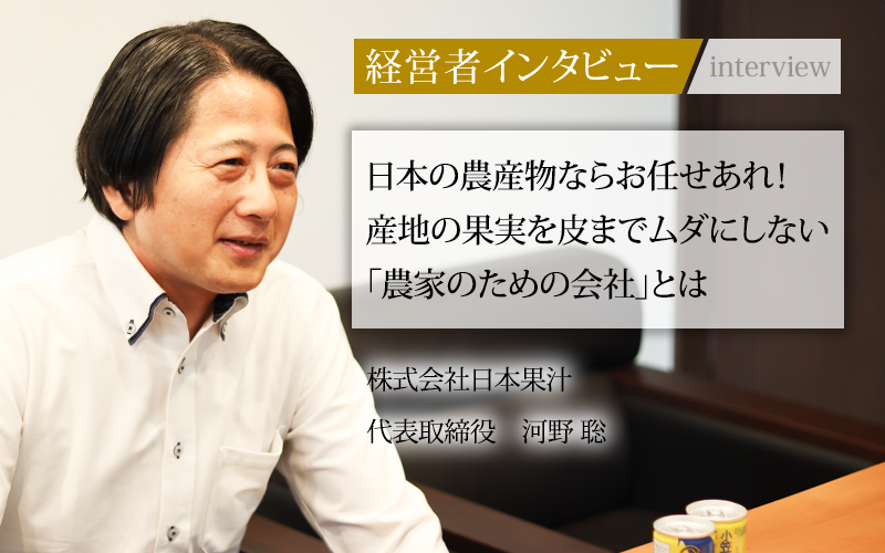 河野聡/1977年、山口県生まれ。近畿大学を卒業後、数社の食品会社に勤務。2009年、株式会社日本果汁を設立。代表取締役に就任。