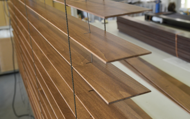 弊社はウッドブラインドやウッドシャッターに特化した専門メーカーです。ウッドブラインドは、単なる遮光製品でなく、スラット(羽根)の角度を変えることで、視野や明るさの調整、風の調節など、多様な機能を持っています。またアルミと異なり、室内に木のぬくもりや上質感をもたらしてくれるのです。そして、これらの機能を高い品質で実現することが私たちの強みとなっています。