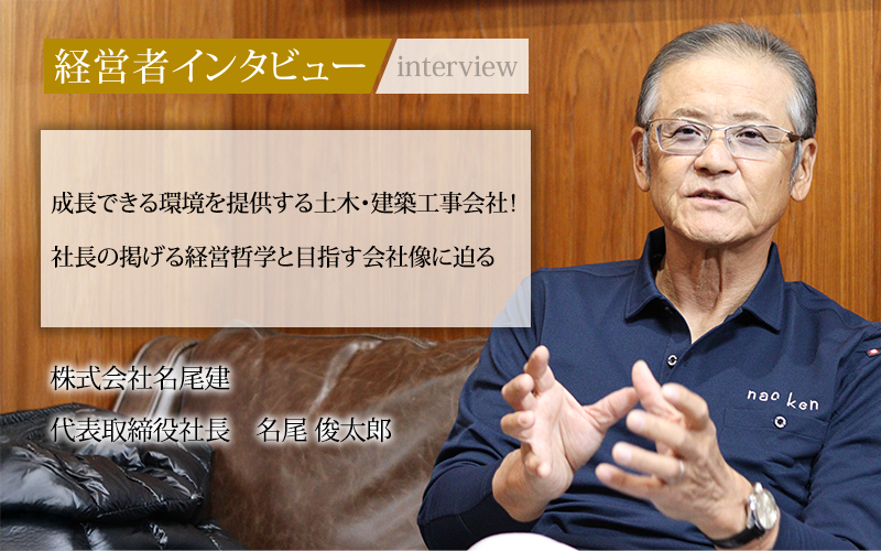 高齢化が進み、29歳以下の就業者は約12%とされる建設業界では、次世代の担い手の確保・育成に向けて処遇改善、働き方改革、生産性向上が急がれる。そんな中、土木建築会社である株式会社名尾建では、10代から50代までの幅広い年齢層の社員を雇い、しかも業界では高い年収を実現している。「経営者はファイターだ」と自負する代表取締役社長、名尾俊太郎氏の取り組みを聞いた。