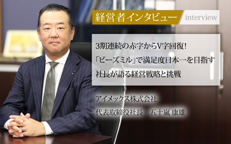 アイメックス株式会社は、創業74年を迎える産業機器メーカーだ。「ビーズミル」や「3本ロールミル」、「プラスチック押出成形装置」など、製造業の上流工程で原材料の加工に使用する機械の製造販売を行っている。リーマン・ショックによる3期連続の赤字からV字回復を果たした同社の取り組みと今後の展望について、代表取締役社長の五十嵐康雄氏にうかがった。